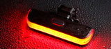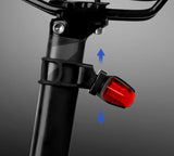 Luz trasera (roja) recargable perfecta para bicicletas con un diseño minimalista. Cuenta con un soporte y liga de goma fácil de instalar y usar en la tija (poste de asiento).