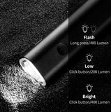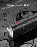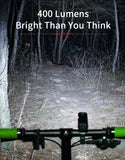 Luz delantera (blanca) recargable perfecto para bicicletas y scooters con un diseño minimalista. Cuenta con un soporte y liga de goma fácil de instalar y usar en el timón.