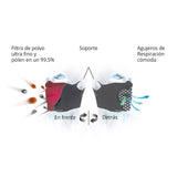 - MICRONET™ es un filtro con una fibra especial física de enmalle que bloquea el 99% de partículas de polvo de un tamaño de 1.7 ~ 2.6㎛ (tamaño de partícula de polvo ultrafino) sin comprometer la respiración cómoda (en frente)