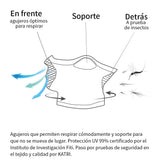 - Los orificios de respiración tipo malla permiten una respiración óptima (En frente)