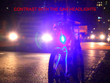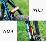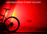 Luz dual (blanca y roja) recargable perfecta para bicicletas y scooters con un diseño minimalista. Cuenta con un soporte y liga de goma fácil de instalar y usar en el timón y/o tija (poste de asiento).