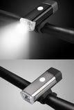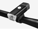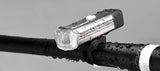 Luz delantera (blanca) recargable perfecto para bicicletas y scooters con un diseño minimalista. Cuenta con un soporte y liga de goma fácil de instalar y usar en el timón.