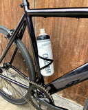 Portabotellas práctico y ligero hecho de aluminio para anclarlo en el marco de la bicicleta con sus pernos. Permite una botella de medio litro (convencionales)